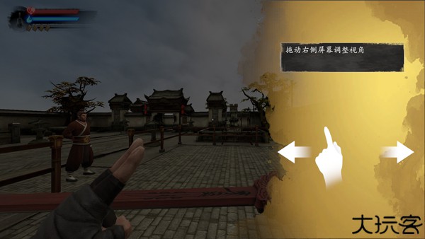 2、初次游玩将进入教学,右滑屏幕可切换视角。