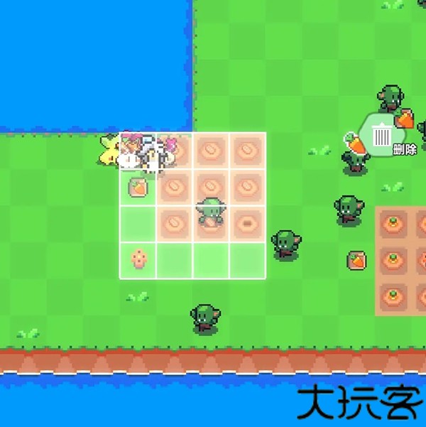 4、每块地放一个浇水器(先放浇水器然后把地挪过去保证浇水器在3*3地的中心)。