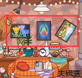 来到三层别墅,依次把客厅的三幅画摆好,摆到和阴影重合就可以解锁录音棚。