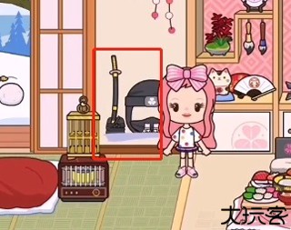 来到温泉小屋,把挨着招财猫的黄色壁纸撕开,里面藏了套忍者服装。