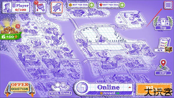 1、首先,需要通过或者跳过游戏的新手引导,然后在游戏的主界面点击右上角的菜单图标。
