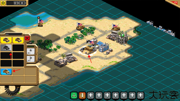 7、点击中间那个基地,会出现多个功能选项,通过点击下方的坦克,上方就出现了一个新坦克。