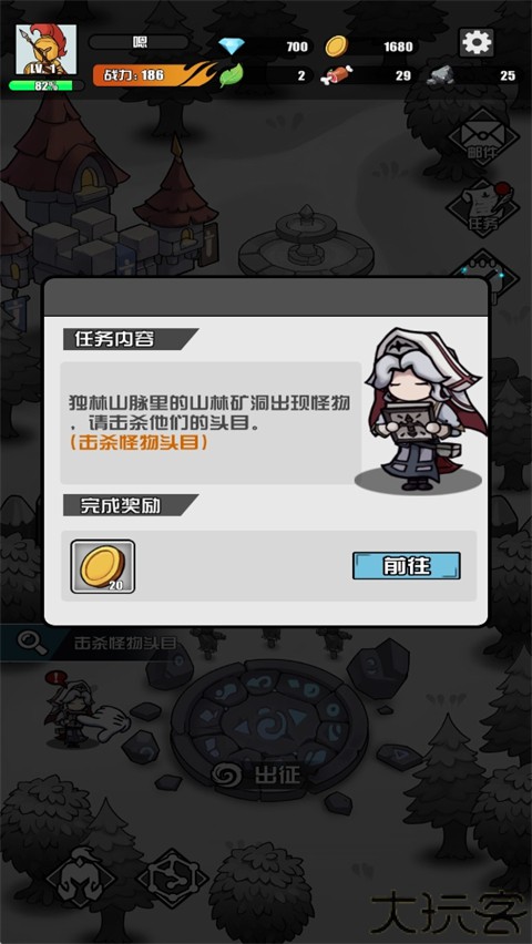 3、签到完成后,点击屏幕中间的出征按钮,而玩家可以选择不同的地图作战。