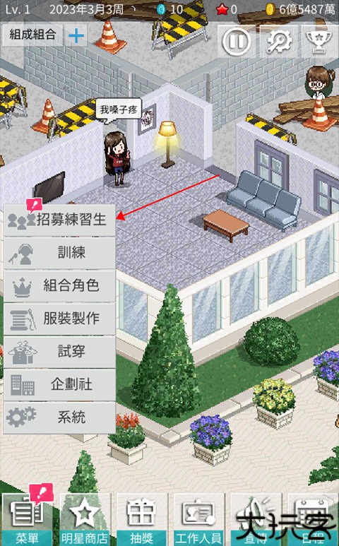1、玩家们进入游戏后点击【菜单】选项后选择招募练习生,进行练习生的招募工作。