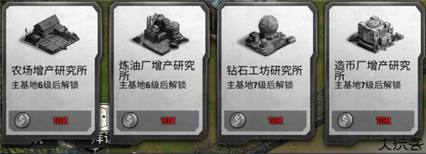 2、农场、油厂、造币厂等供给资源,升级可提高效率。
