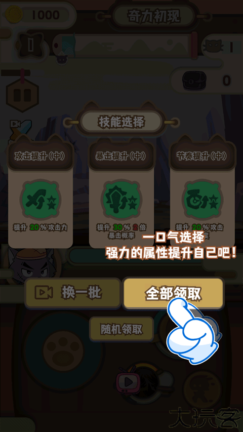 4、在每次攻击前都可以点击“全部领取”一口气选择强力的属性提升自己!