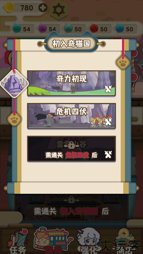 7、完成第一个关卡后,即可解锁其他的关卡。