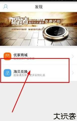 1、进入软件后,点击发现,在相关界面中,点击海贝兑换。