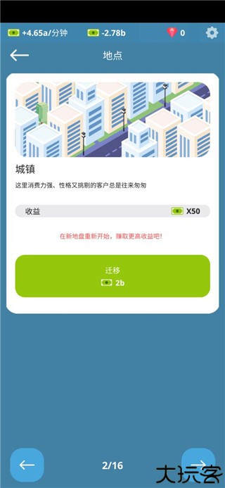 6、玩家还可以对广场进行迁移,不同的地方,其收益都不一样。