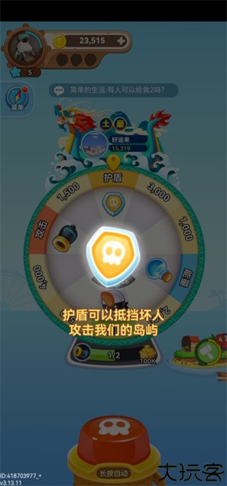 初期金币紧缺时,利用转盘获得金币与攻击道具。