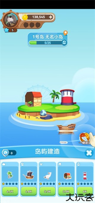 当前岛屿建成后,可前往新的岛屿继续挑战。