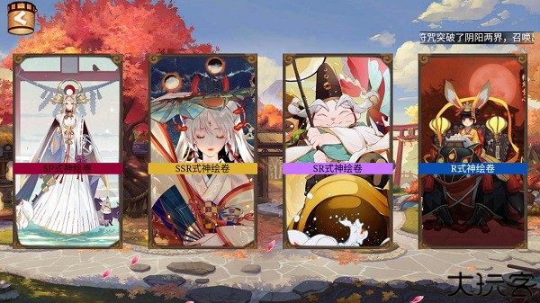4、式神以SP、SSR、SR、R划分成四种不同的品质,式神依次随着召唤的升级而提升。