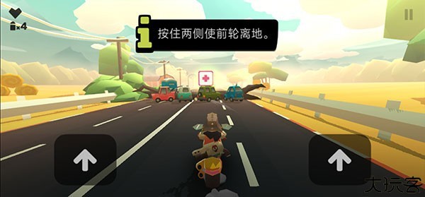 3、遇阻时长按左右按钮抬前轮,飞跃卡点顺利通过前方关卡。