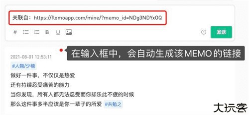 2、页面输入框将自动附上当前内容对应的引用链接。