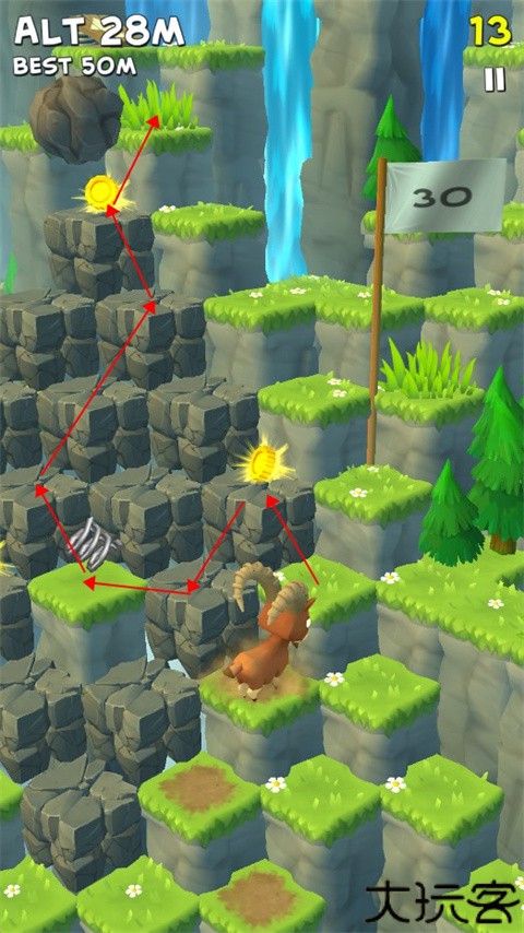 石山羊安卓版,英文名为Mountain Goat Mountain,是采用3D画风又简单有趣的休闲益智游戏。石山羊安卓版下载完成后,玩家通过触控一只石山羊在山间不停的跳跃。玩家为了避免饥饿而必须生存下来,玩家需要不断的食草来躲避掉落在山间的各种障碍物,不停地向上跳跃,获取最高的分数。游戏的背景设计也非常精良,无论是漫天粉色的樱花或清油油的草地,都制作的非常细致,让人耳目一新。