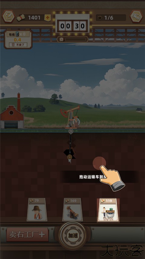 8、当运输车装满了石油,需要把运输车运送到工厂出售才能获得可观的金钱收入,因此玩家要点击“卖右工厂”。