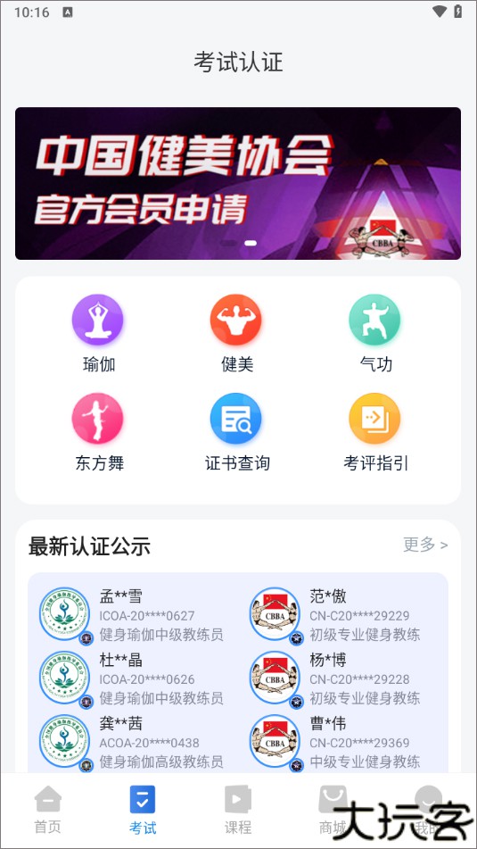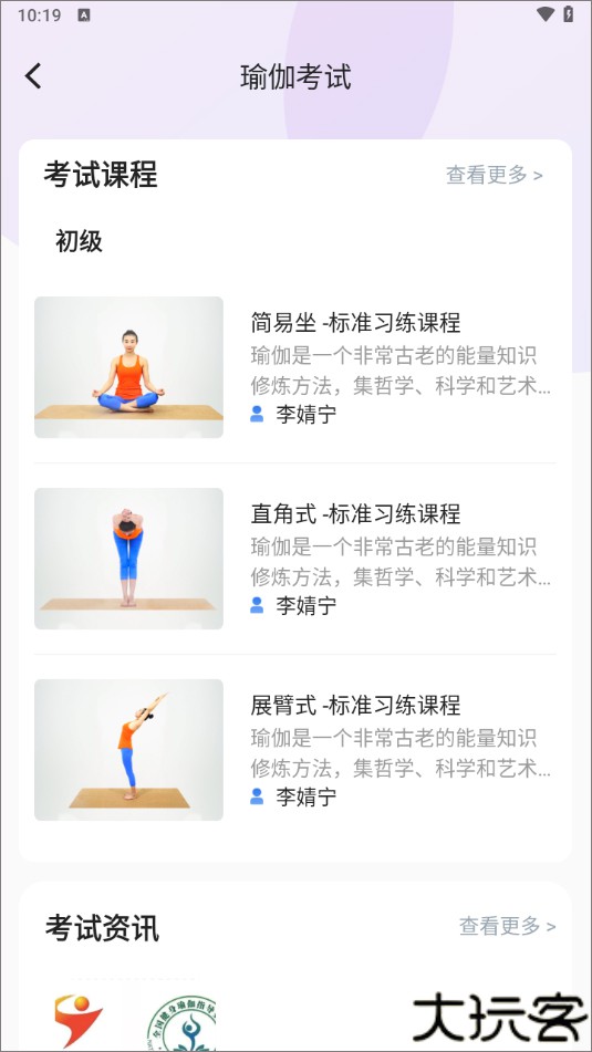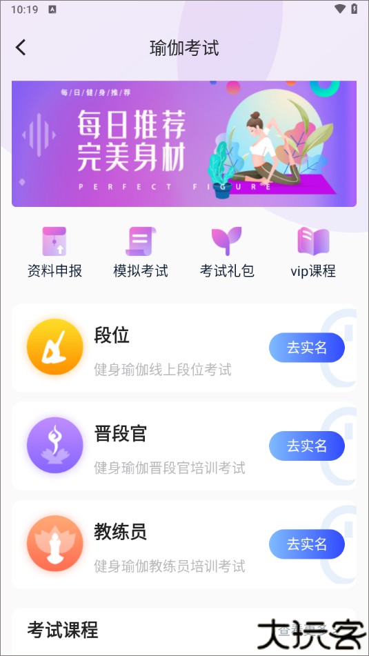2、然后点击以进入用户所需要考试的科目,比如瑜伽,