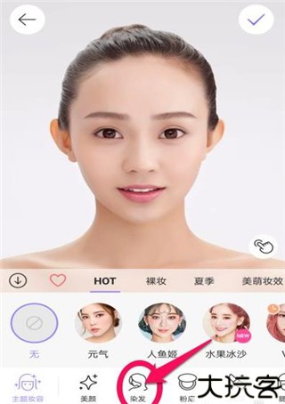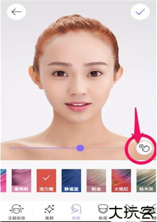 点击“染发”按钮,系统自动识别发丝并应用色彩。