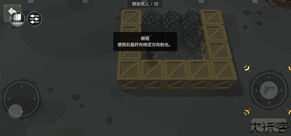 9、而滑动右下角的摇杆,控制玩家对子弹射击的方向。