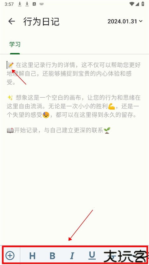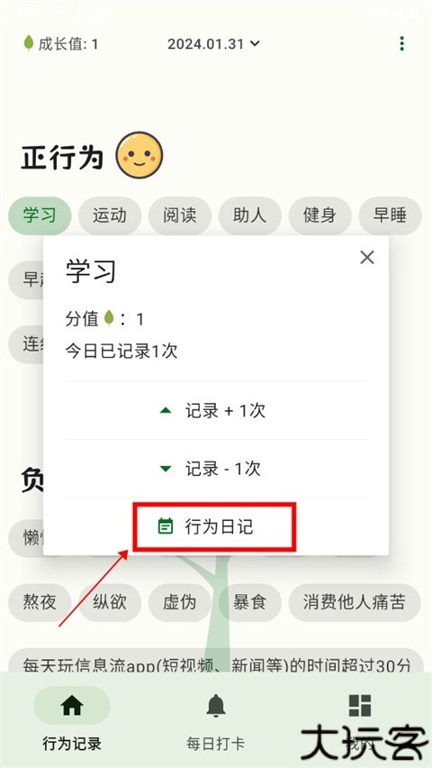 2、弹窗弹出后选择行为日记,进入编辑操作。