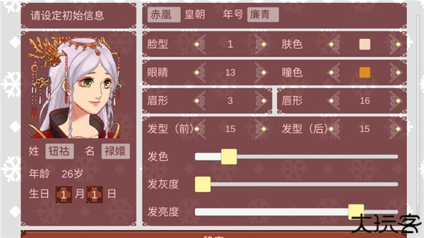 2、这里可以设定初始信息,如姓名,年龄、还可以自定义脸型、眼睛、眉形等。