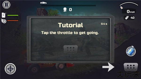 1、点击画面左侧的按键以进行射击,点击画面的右下角按键以踩油门使汽车向前进。