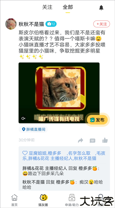 在猫友圈分享抓拍、参与猫救助,关注猫屋安全。