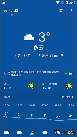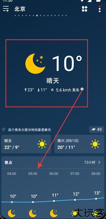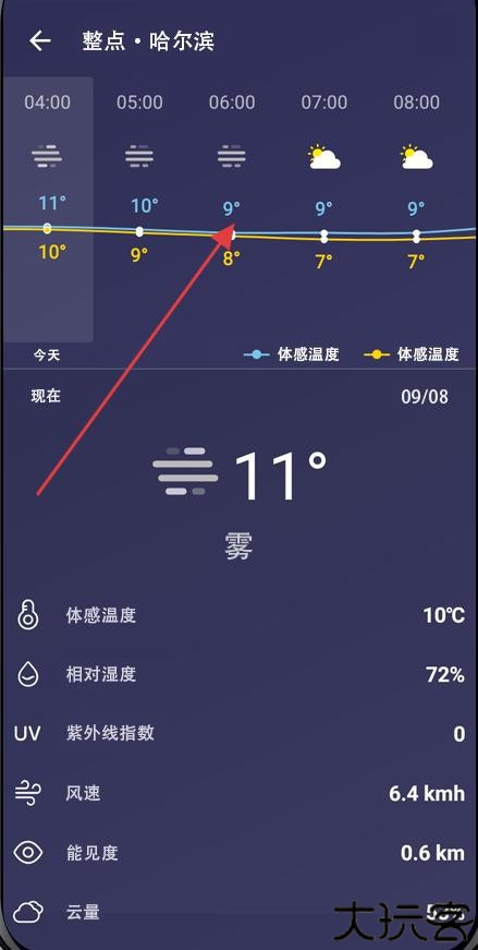 呈现体感温度、风速、湿度等详细数据,点击节点即可查看信息。