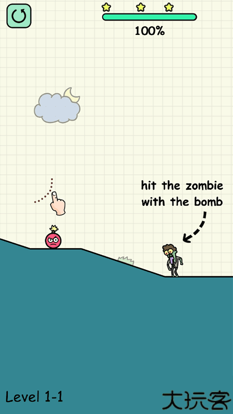 你好僵尸中文版,英文名为Hello Zombie,是一个充满创意和趣味的休闲益智解谜闯关类游戏,该游戏有着清爽简约的画面卡通风格,以及拥有十分有趣的关卡设计。你好僵尸中文版下载完成后,玩家可以使用魔力画笔,用少量的墨水画出线条形成道路好驱使炸弹去炸掉僵尸,以三星通关为最终目标,玩家收集每个关卡中的星星数量以解锁皮肤。