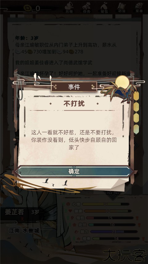 3、通过各种事件和挑战不断强化玩家的角色,打造更加强大的江湖人物。