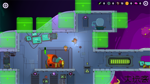 3、游戏玩法分为了探索和建造两个部分,玩家在基地内,可以挑选各种设施以进行建设,选中后拖动至绿色区域即可。