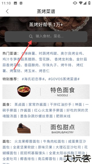 进入蒸烤菜谱页面,在搜索栏输入食材即可快速找到菜谱。