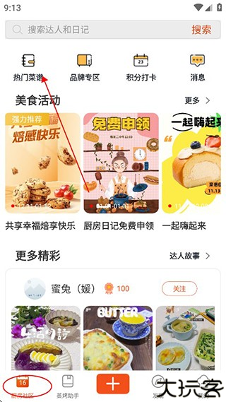 点击社区热门菜谱,找到感兴趣的内容和创作者。
