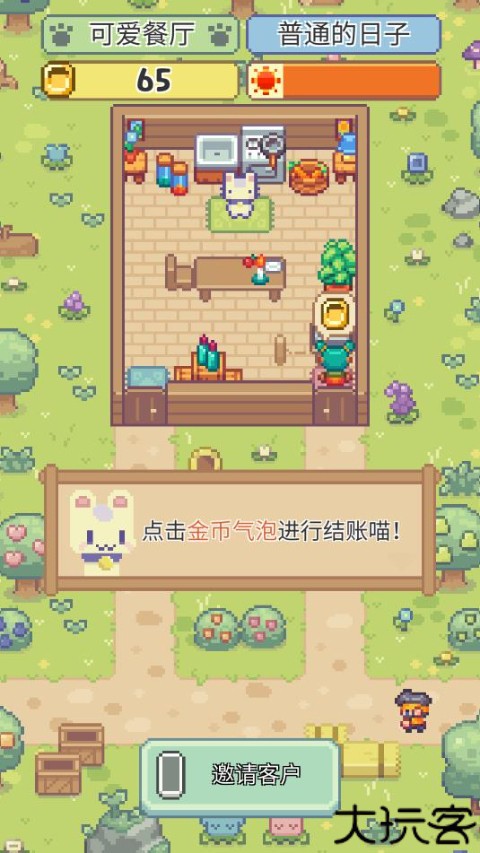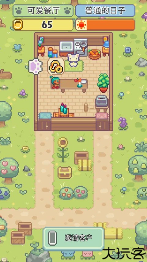 4、通过邀请功能吸引猫咪顾客前来用餐,提升人气。