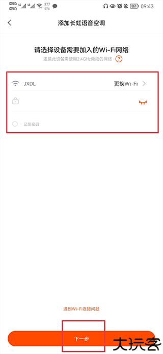 4、将手机接入家庭WiFi后,依提示点击“下一步”进入设备配网界面。