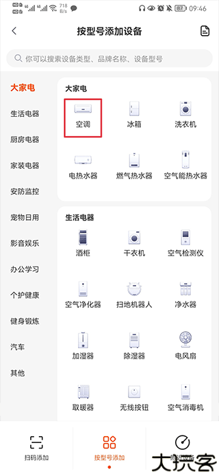 2、用户可选扫码识别、手动输入型号或关键词搜索三种连接方式。