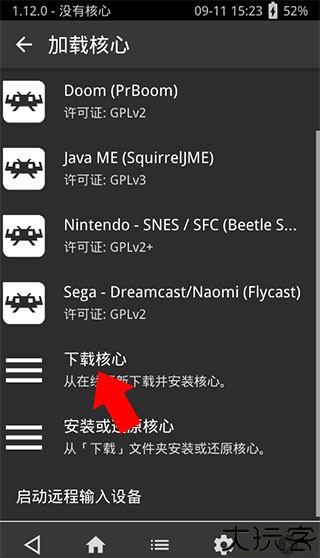 3、前往核心库,选择适配目标游戏的内核类型进行加载。