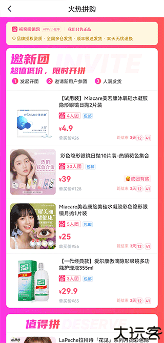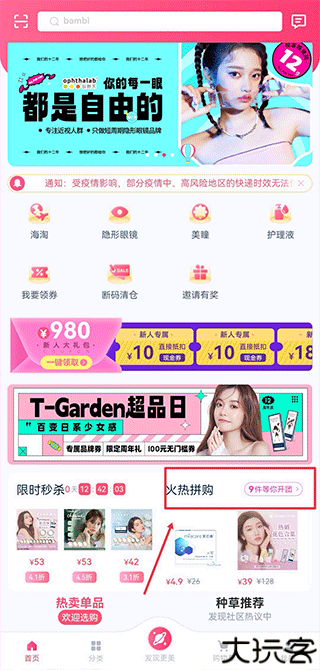 1、打开APP主页,点击“火热拼购”进入商品团购专区。