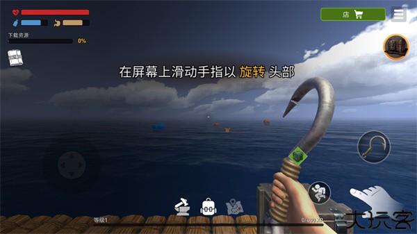 3、滑动屏幕调整方向,环顾四周以便收集漂浮物或判断生存方位。