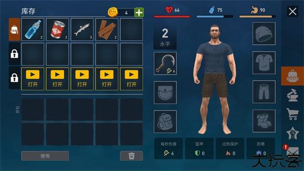 5、这里也依靠拾取材料合成道具,建造鱼网、木筏、浮屋等用于长时间生存。