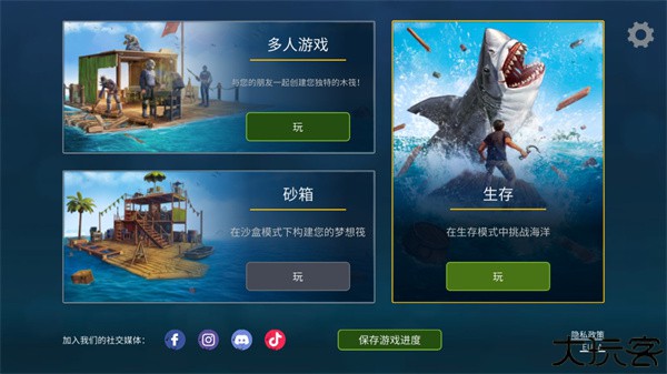 1、开局可选择沙盒、挑战或组队模式,适配不同风格的海上求生体验。