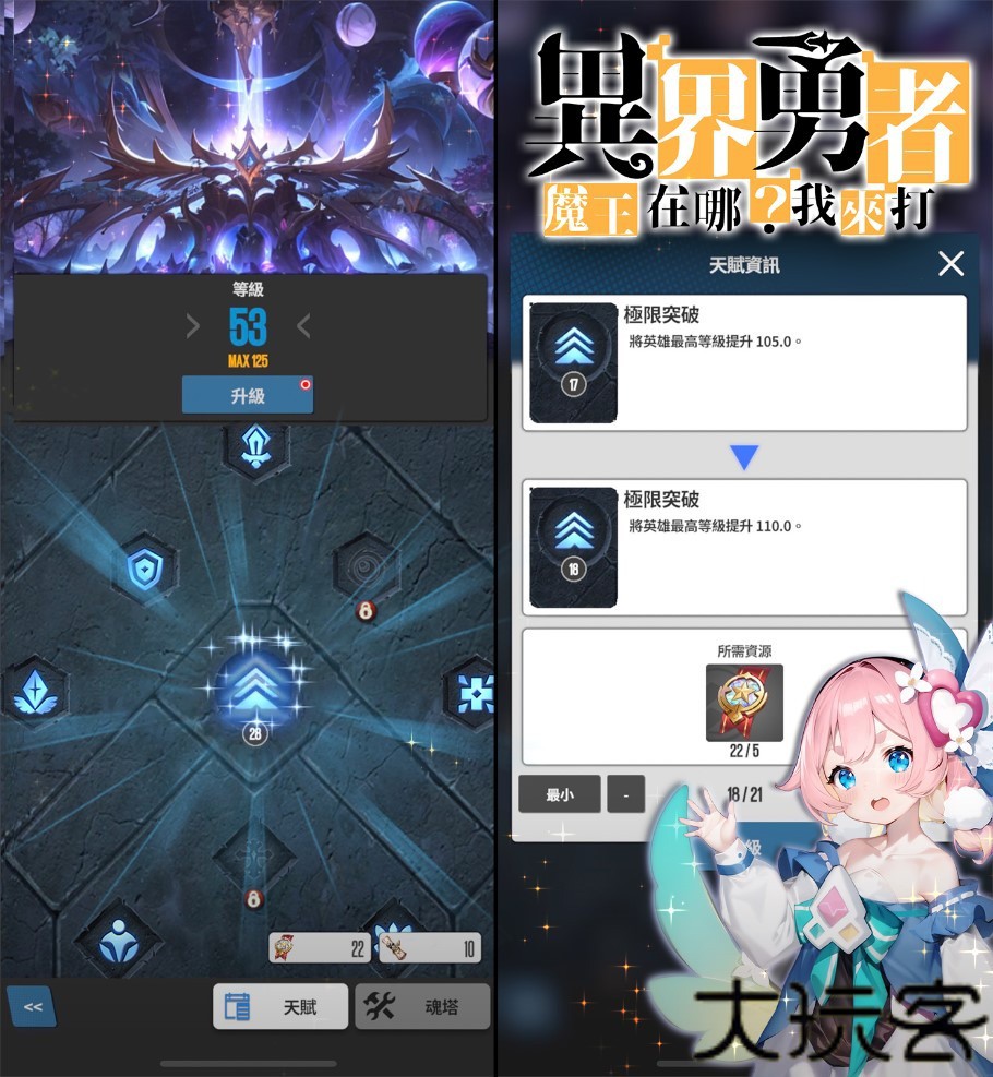 3. 当角色升星时,可以获得天赋升级用的点数,天赋不仅可以开启角色等级的最高上限,还可以增加不同职业、种族、属性的数值,对于强化角色是很重要的一环。