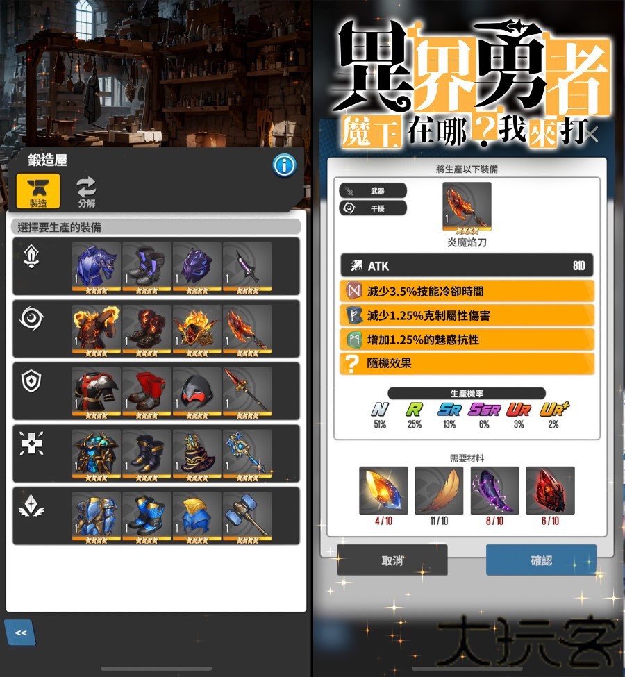 5. 而后期的装备则从「锻造屋」系统进行取得,装备除了为玩家提供基础数值之外,还会随机获得附魔效果。