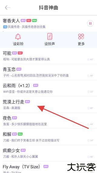 3、滑动查找目标铃声如荒漠上行走,点击该铃声进行设彩铃来去完成铃声设置。