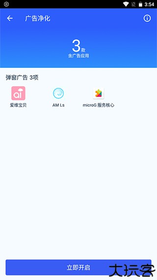 系统自动扫描含广告应用,底部选择“立即启用”。