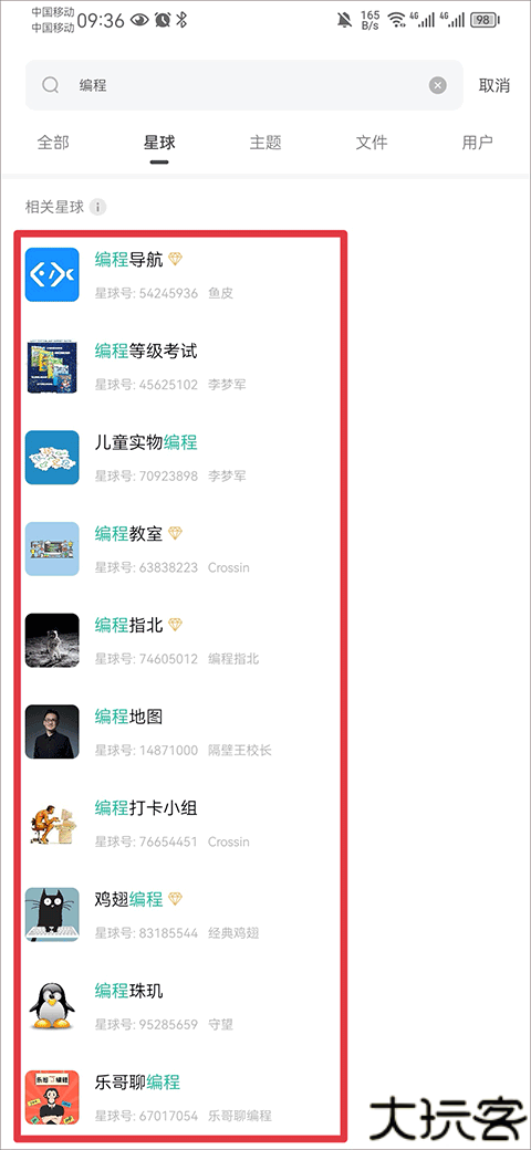 1、在首页搜索框输入星球名或用户信息,快速查找目标圈子。