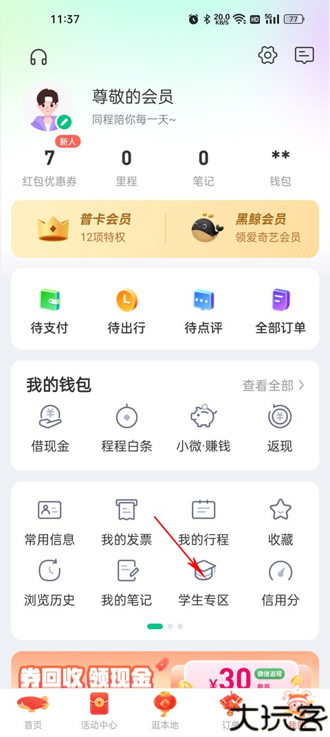 3、在服务栏目中选择“学生专区”,进入专属页面。
