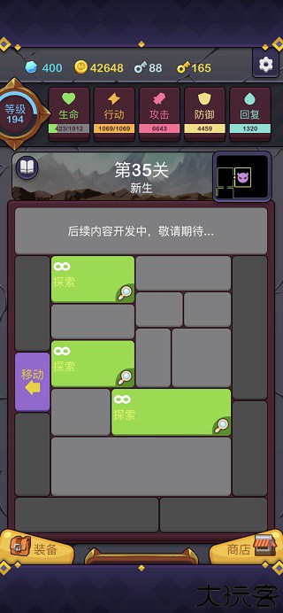 探索格子能获得金币和经验,是提升等级和积攒资源的主要手段。