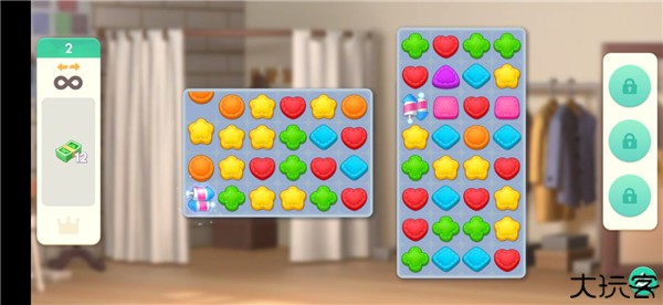 7、在这里如果金币不够或者钞票不够还可以进行玩三消游戏获得;