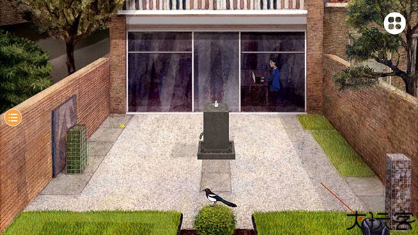 在喜鹊站到石头上后,点击Milo,吓跑喜鹊,女人出来查看,再次点击Milo,过关。